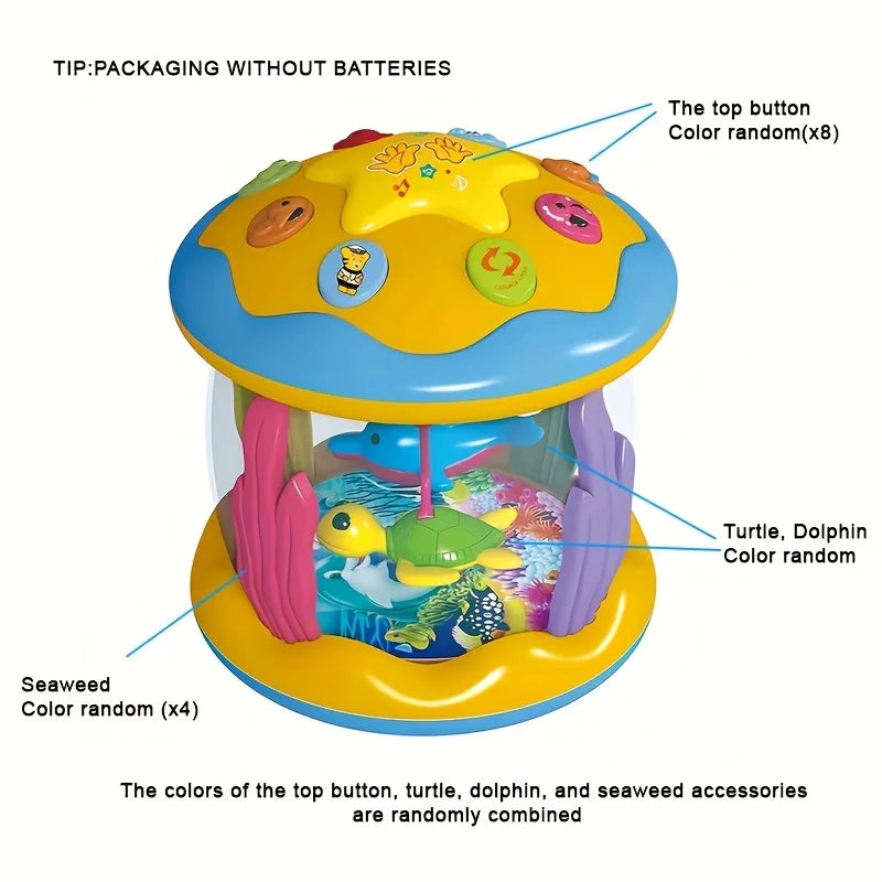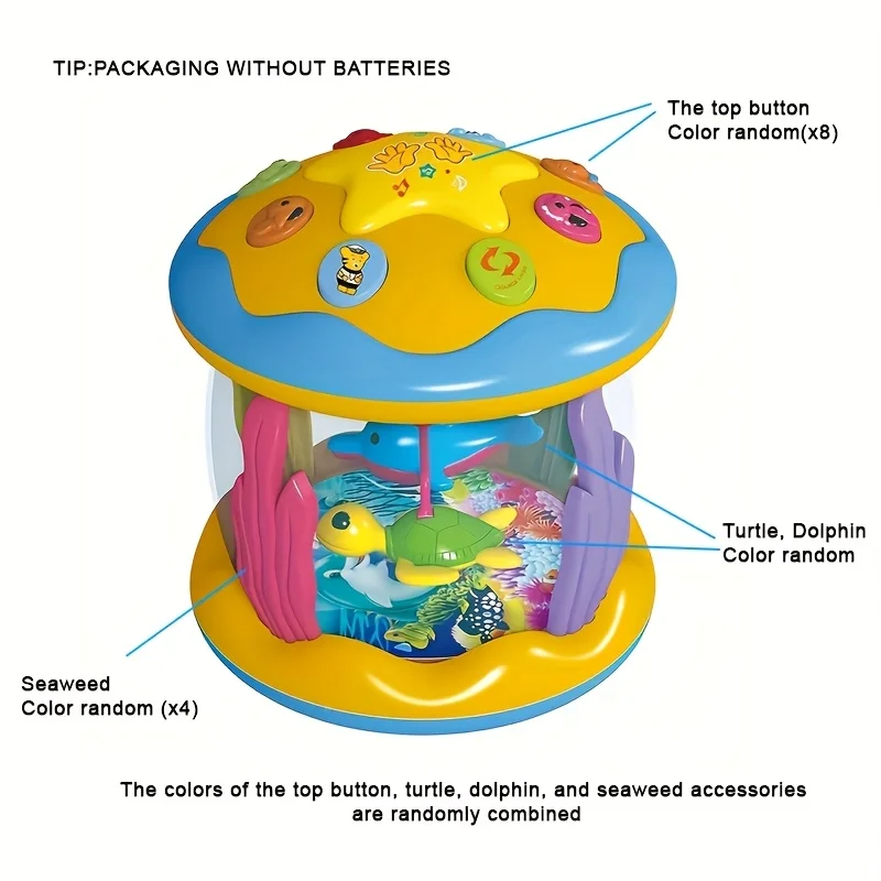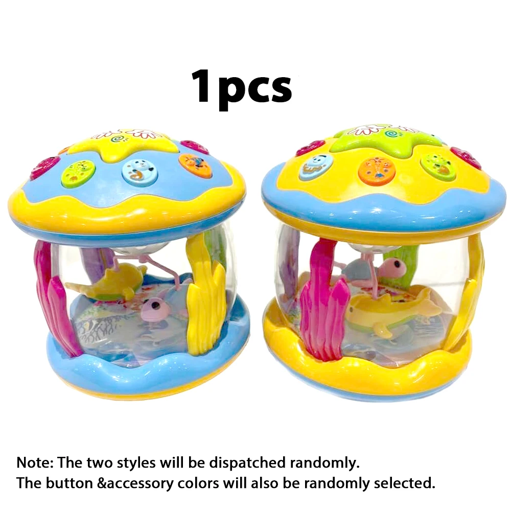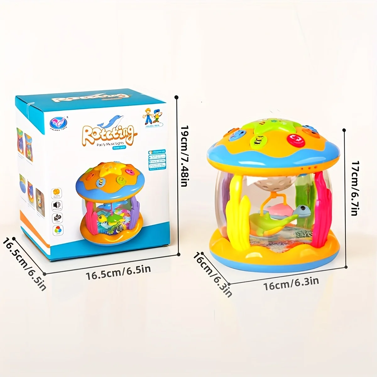 Educational musical drum toy made of safe plastic, designed for toddlers 13–36 months. Encourages crawling, tummy time, active play, and early motor development. Suitable for boys and girls, easy to use under adult supervision.