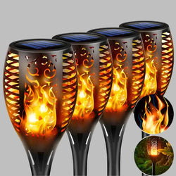 【Solarfackel leuchtet mit Flammen für die Dekoration im Freien】: Verbesserte LED-Solarfackel-Gartenleuchten flackern warme goldene Lichter und imitieren extrem realistische und natürliche tanzende Flammen.