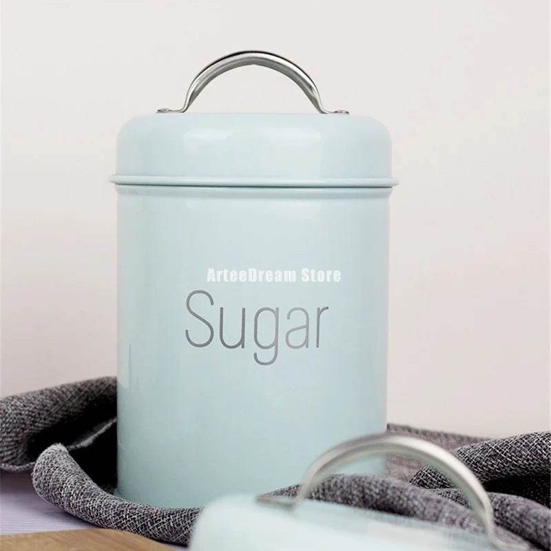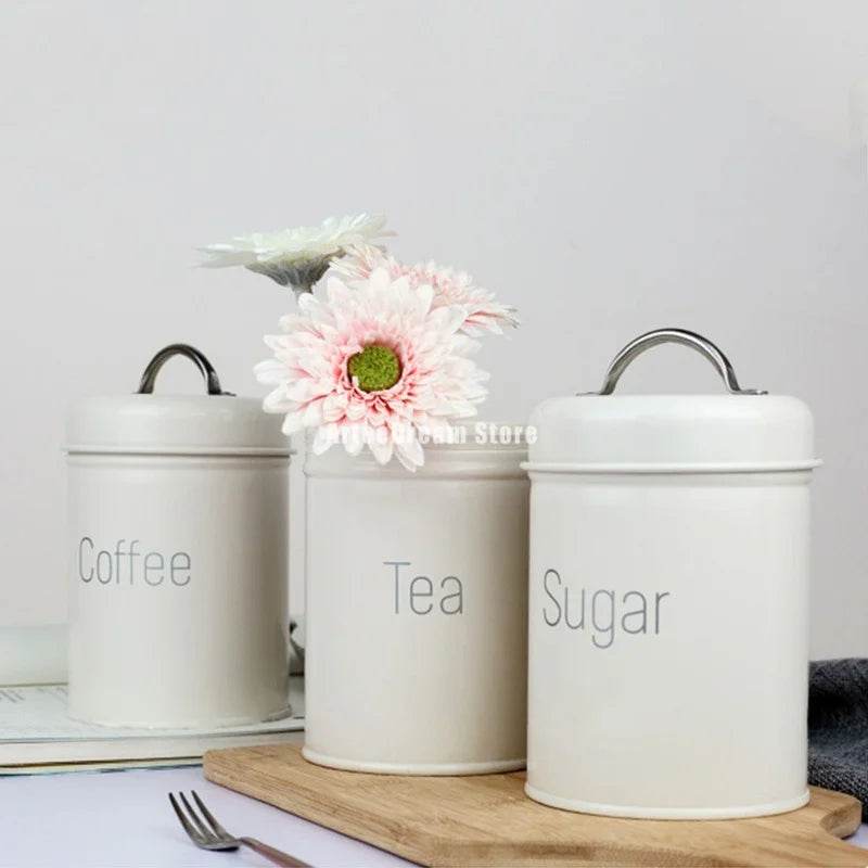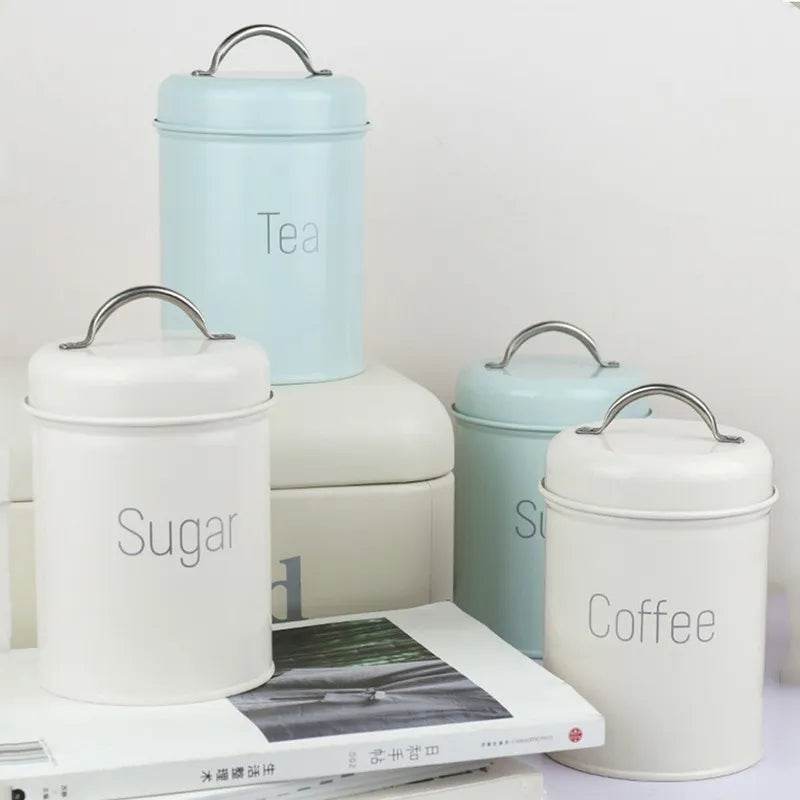 Aufbewahrungsbox aus Metall, Tee, Kaffee, Zucker.