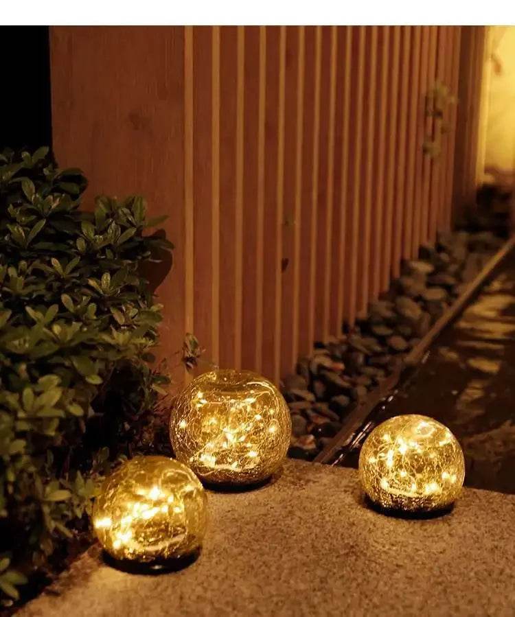 Waterproof LED solar garden lights with cracked glass ball lamps