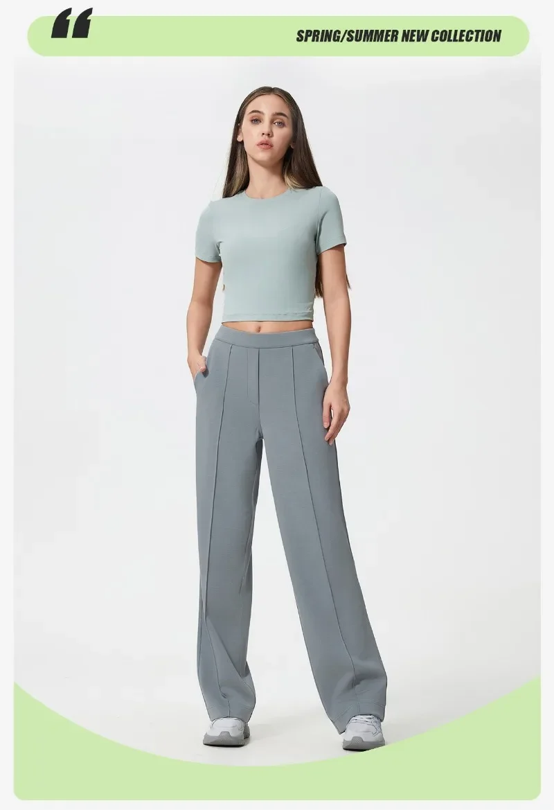 Women’s loose-fit straight pants made from breathable nylon with a midweight feel. Ankle-length design offering comfort and flexibility, perfect for sporty office looks and all-day wear.