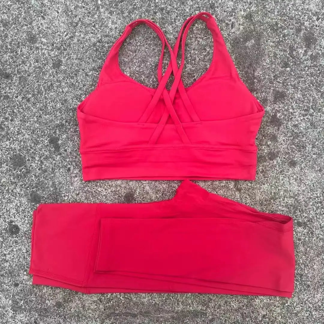 • Women’s Yoga Set with solid color and compression fit