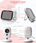 Wireless Baby Video Monitor features a 3.2-inch color LCD screen with 720P camera quality, night vision up to 5 meters, and two-way audio talk for clear communication. Powered by a 1000mAh rechargeable battery, it offers temperature monitoring, music playback, and power-saving mode.