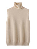 Sleeveless extrafine merino wool sweater made from a single seamless thread for a soft, comfortable, high-end feel. Features a classic turtleneck and regular fit, ideal for elegant all-season layering. Hand wash only with gentle detergent; Asian standard sizing—please check the size chart before ordering.