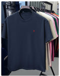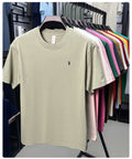 Men Cotton Embroidery T-shirt – breathable, lightweight short-sleeve tee with pony embroidery and round neck, perfect for summer casual daily wear.