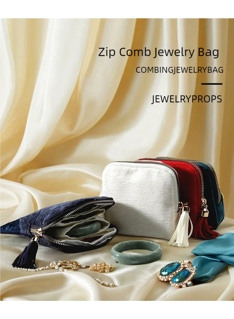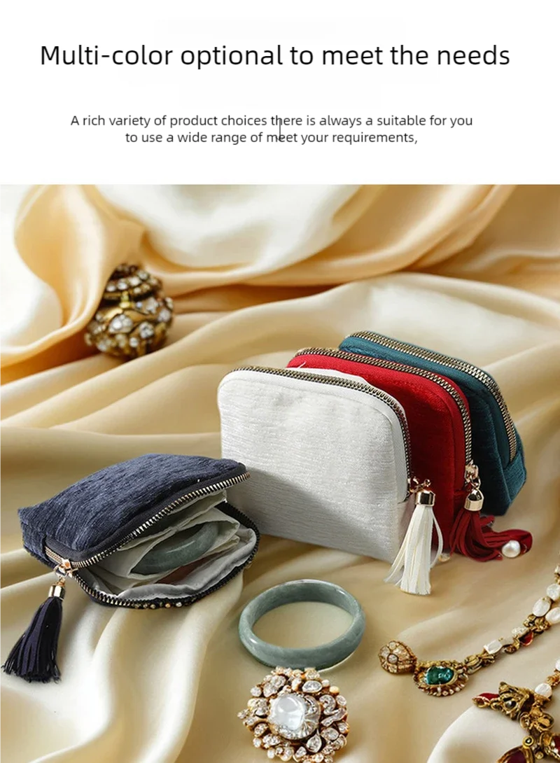 Mini Travel Jewelry Pouch – portable fabric storage bag with zipper for bracelets and accessories, lightweight and perfect for travel and daily use.