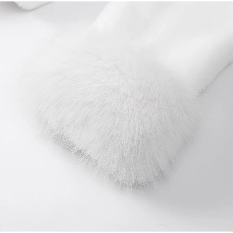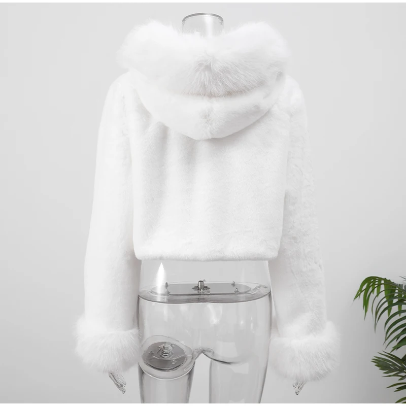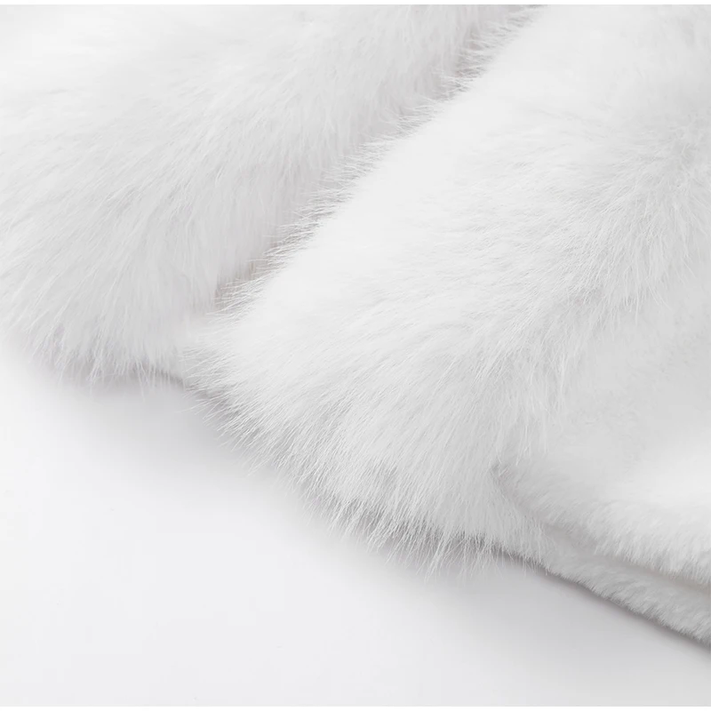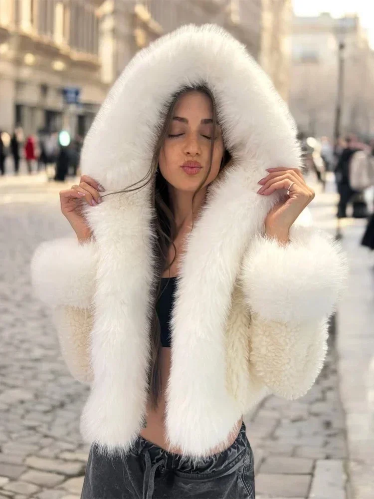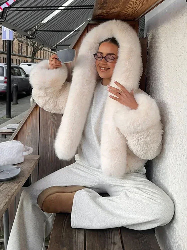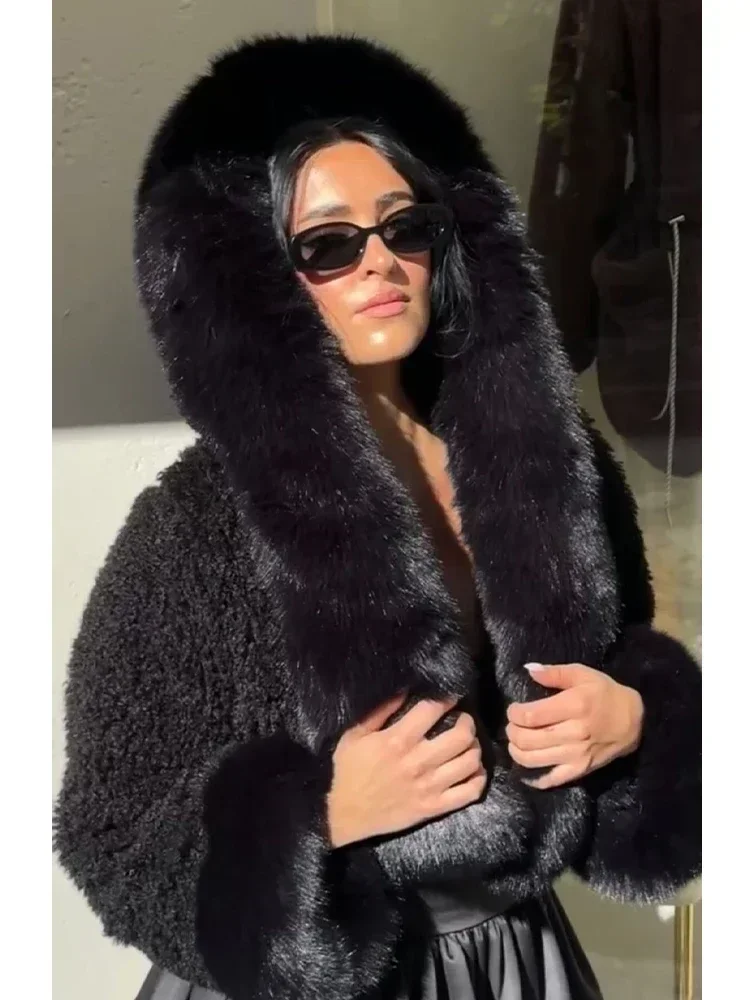 Short faux fur coat with a turn-down collar and full sleeves, designed in a loose, wide-waist fit. Made from high-quality man-made fibers (96%+), offering thick warmth, comfort, and an elegant casual style for autumn and winter wear.