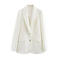 Slim fit women’s blazer made from durable polyester with synthetic fiber composition. Features a tailored silhouette ideal for casual, office, and commuting wear, offering a polished look with all-day comfort.