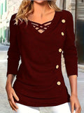 Designed for autumn and winter, this casual top has a regular length, long sleeves, and a flattering V-neck, making it perfect for everyday wear and easy styling.