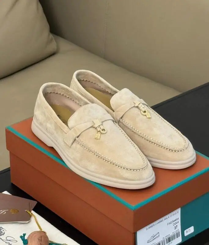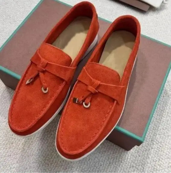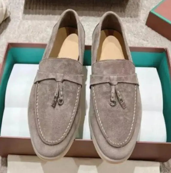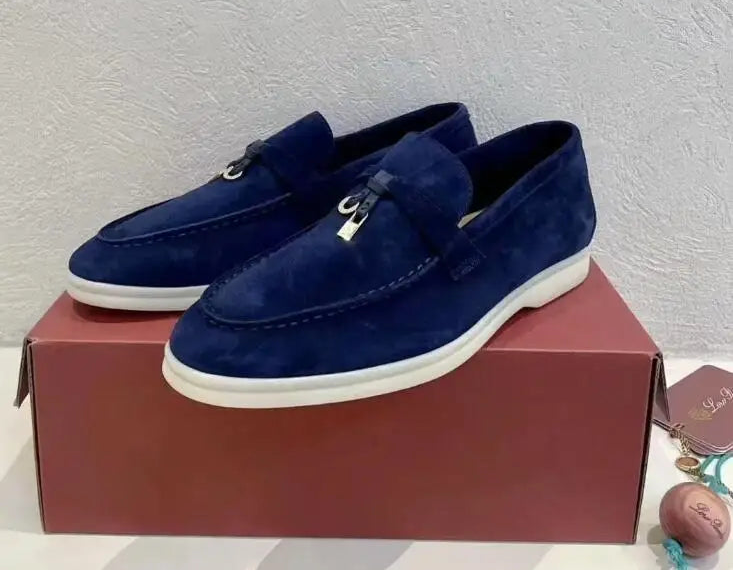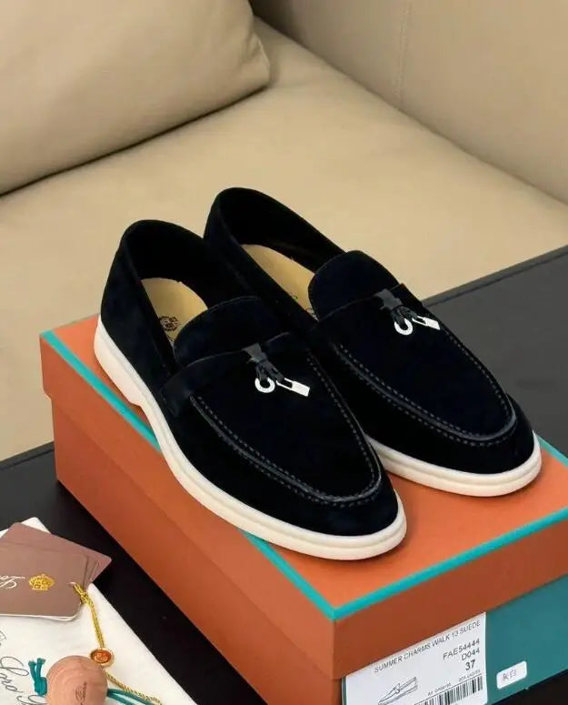 Unisex Leather Loafers – luxury casual shoes for men and women with round toe and rubber sole, comfortable driving shoes perfect for daily wear.