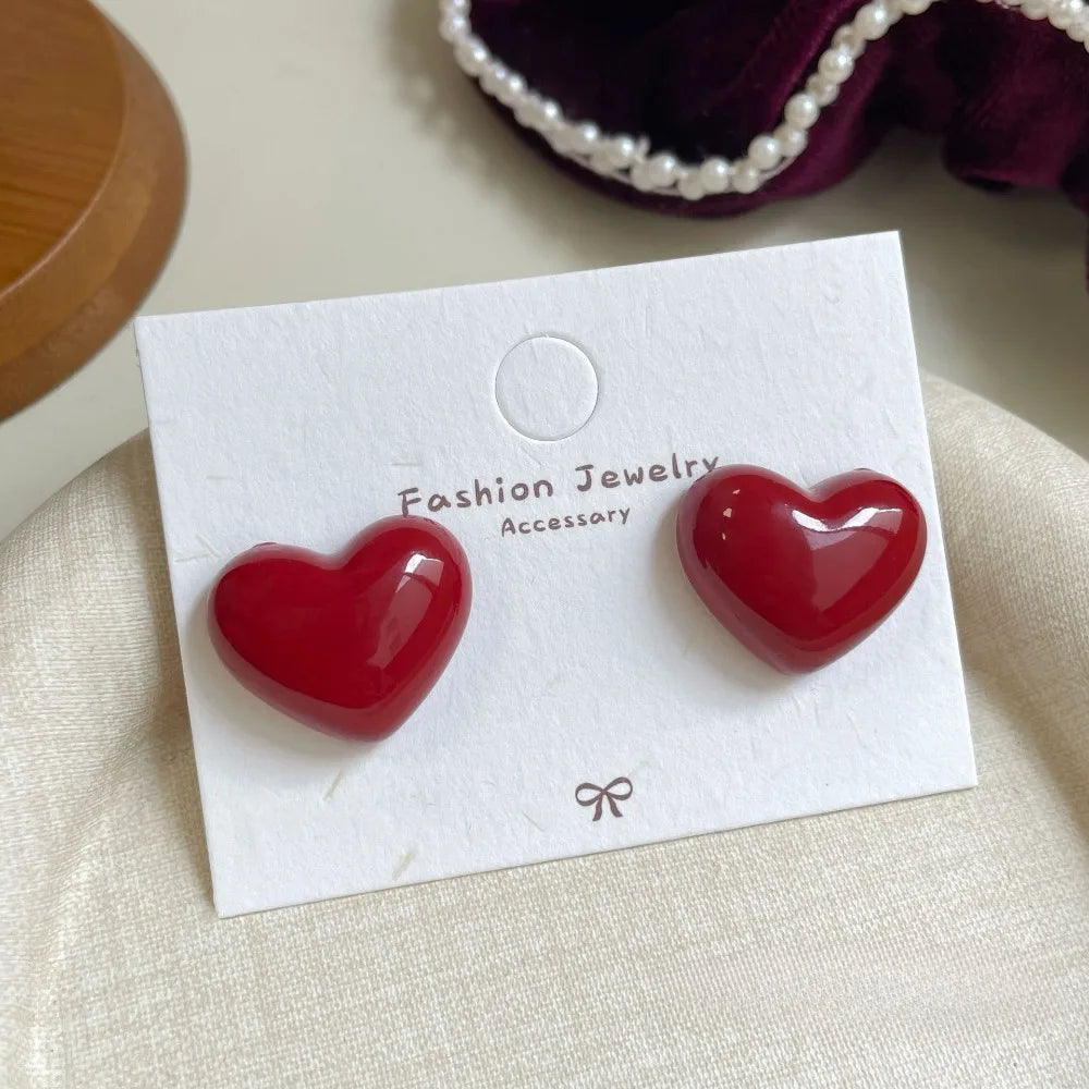 Retro red bow stud earrings crafted from resin and zinc alloy, featuring a cute and romantic bowknot design. Lightweight and stylish, perfect for everyday wear or as an elegant gift.