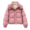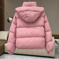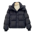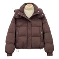 Women’s oversized hooded puffer jacket crafted from a soft cotton-polyester blend with added stretch. Features a zip-up closure, functional pockets, and a relaxed, wide fit, offering warmth and comfort for casual streetwear in autumn and winter.